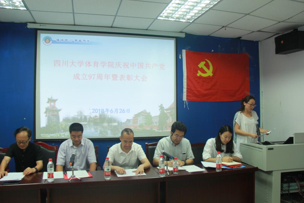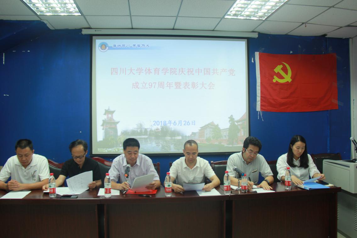 2018年6月26日下午,体育学院在会议室隆重召开庆祝中国共产党成立97周年暨表彰大会。学院全体班子成员、党总支委员、全院教职工及学生党员参加大会,会议由学院党总支书记夏泽友同志主持。