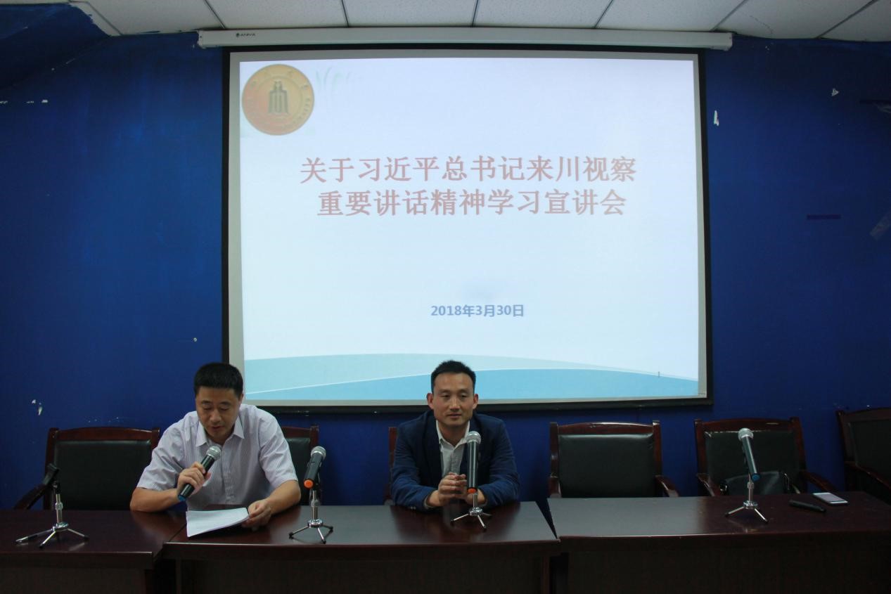 2018年3月30日下午,按照学校《关于做好习近平总书记来川视察重要讲话精神学习宣讲工作》的要求,体育学院组织开展专题思政课活动,宣讲习总书记重要讲话精神。宣讲会由学院党总支书记夏泽友同志主持,全体研究生以及教师代表参加了此次活动。