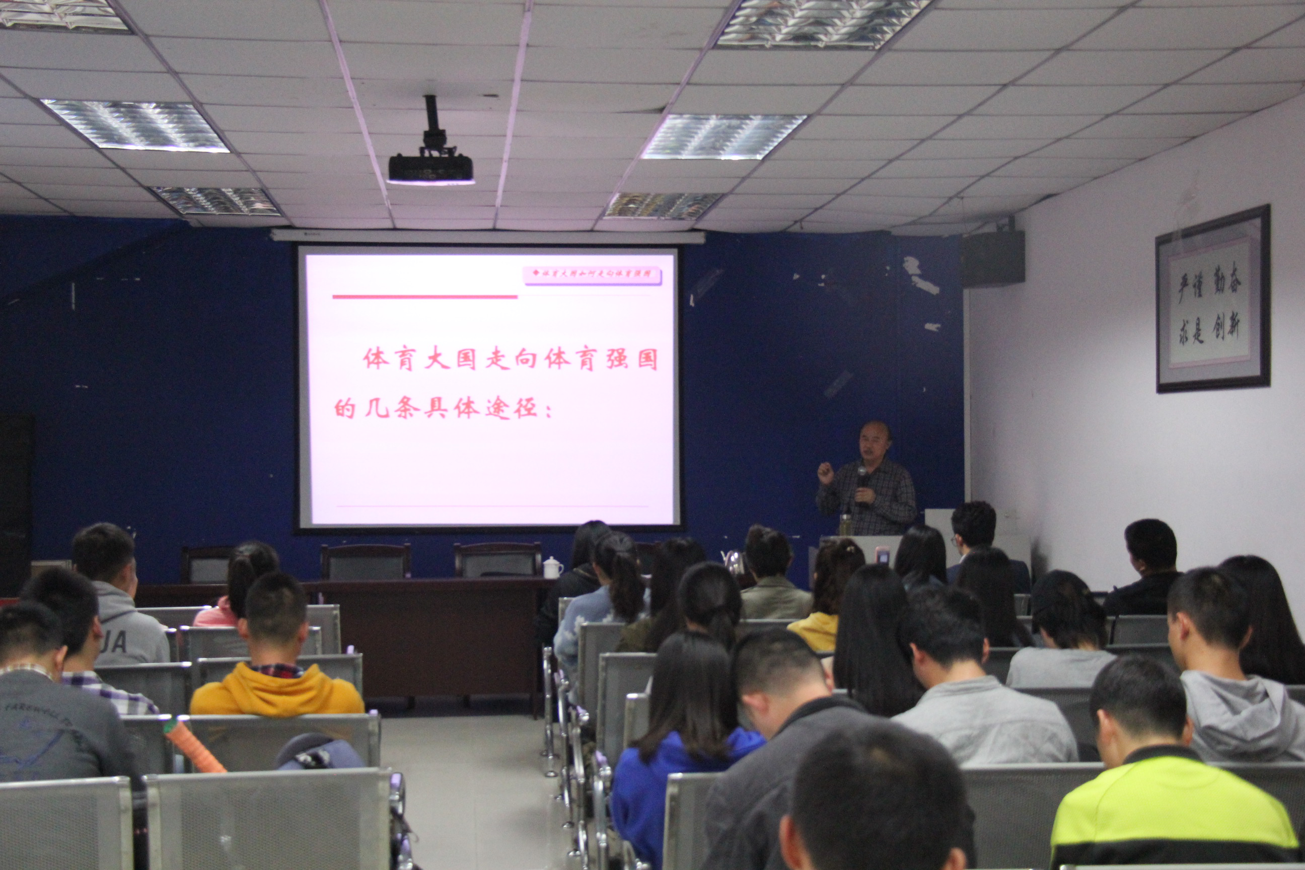 通过讲座,同学们纷纷表示对举国体制发展体育问题有了进一步认识,作为一名体育人,应积极肯定举国体制,为我国体育建设贡献一份力量。