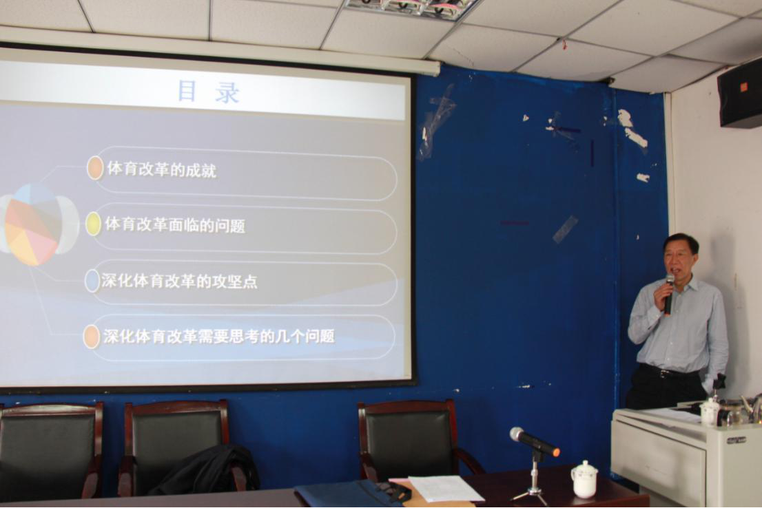 杨桦教授从改革开放四十多年历史大背景下提出体育迎来新的机遇期;从社会背景及政策环境的角度向同学们介绍了我国体育改革之路的收获和未来发展的方向。围绕体育改革:成就、问题与突破主题,从体育改革的成就、体育改革面临的问题、深化体育改革的攻坚点以及深化体育需要思考的几个问题等四个方面来展开阐述。而关于