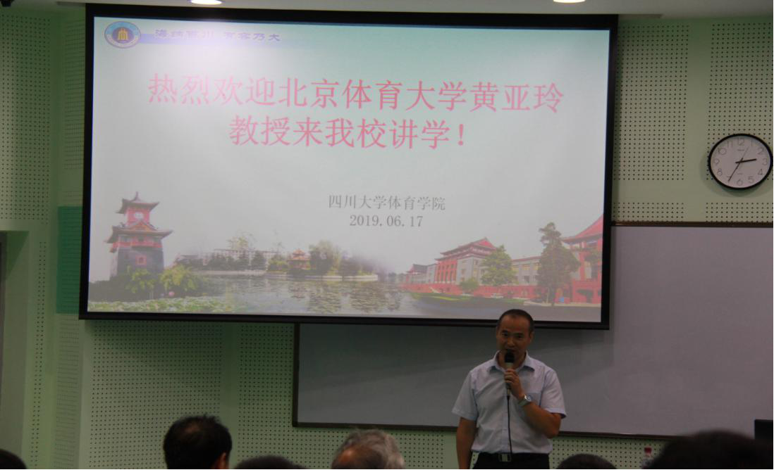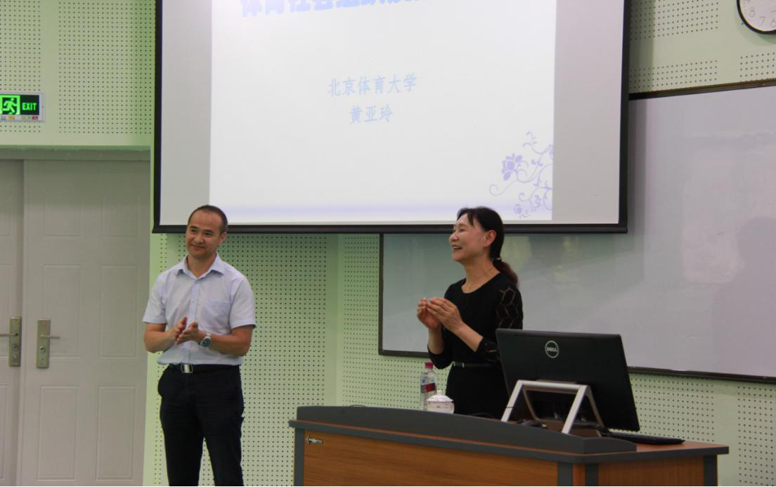 2019年6月17日14:30,北京体育科学学会体育社会科学分会常委兼秘书长,北京体育大学博士生导师,黄亚玲教授应邀在太阳成集团tyc122cc研究生院1-102做题为“体育社会组织发展与建设”的讲座。本次讲座由体育学院院长向勇教授主持。我院副院长邱硕立副教授、体科所副所长李姗姗副教授、原太阳成集团tyc122cc副院长宫川副教授、原太阳成集团tyc122cc工会主席赵强教授、2018级辅导员韩淞老师,体育学院全体研究生以及广大校友参加本次讲座。
