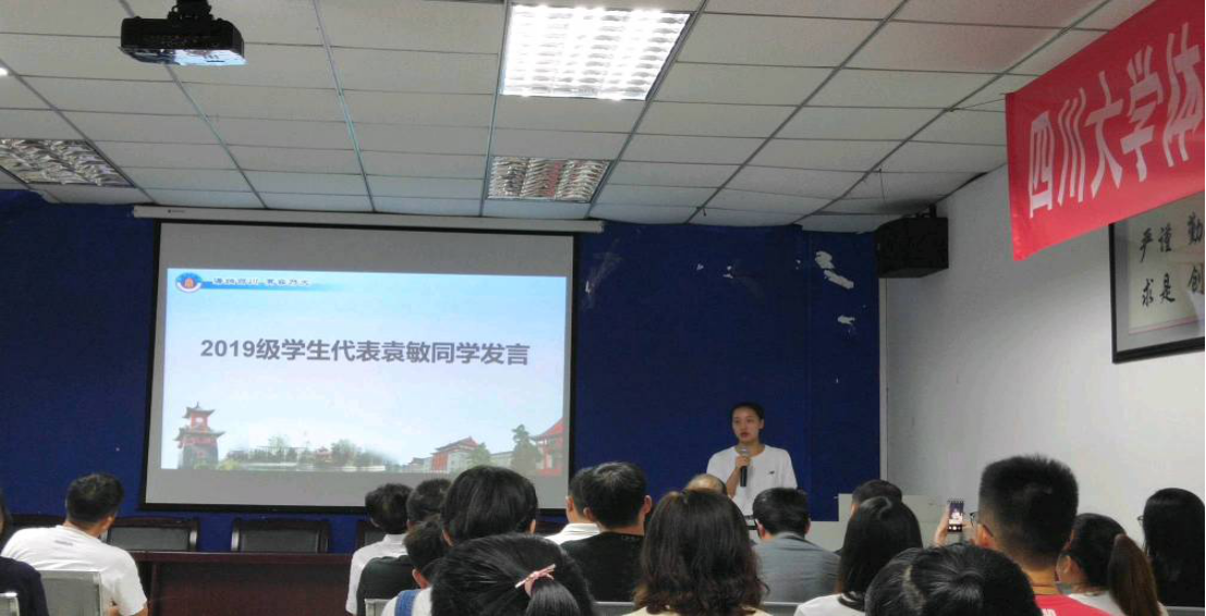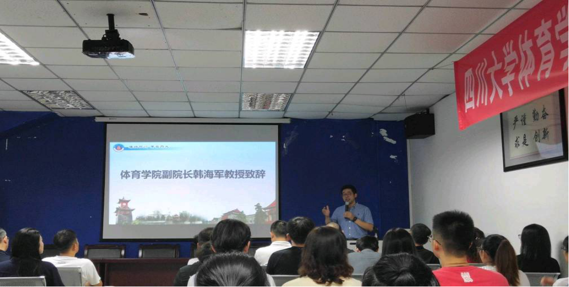 首先体育学院院长向勇教授致辞。第一,新学期新征程,对新来研究生表示欢迎和祝贺。第二,向院长对同学们也提出三点希望,一是珍惜研究生生活,利用多学科交叉融合环境,实现自身综合素质提升。二是希望三年学有所成,三是坚定目标,朝着方向不懈前进。第三,提出一点要求,做出表率,体现川大面貌,形象,川大体育人的精神。最后作为学长关心同学们学习生活,希望同学们顺利开启在川大学术之路。