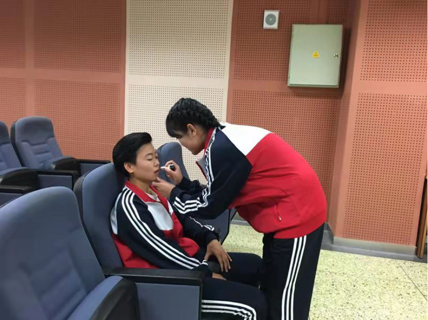 比赛当天,代表队成员提前4个小时进行比赛最后排练,成为第一只到达现场的队伍。从朗诵的站位到手语结合,从PPT播放与音乐的配合,一点一点的扣细节,一遍一遍的和音乐,不仅要比的到位,还要做的同步,杨莉莉说:“要么不做,要做就做到最好,体育学院一定是最棒的!”。比赛过程中,代表队分工合作,全员上阵,通过演讲、朗诵、我和我的祖国手语表演三者结合,得到了老师和同学的一致认可,最终获得第八名。