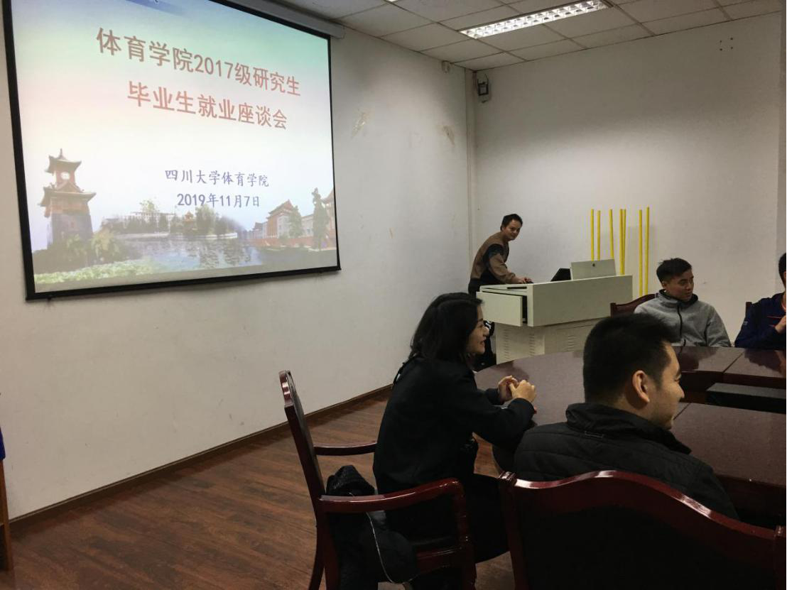 2019年11月8日下午在太阳成集团tyc122cc望江校区体育学院会议室召开了“体育学院2017级研究生毕业生就业座谈会”。出席本次会议的有体育学院院长向勇、体育学院书记夏泽友、2017级辅导员王芳以及2017级的同学。会上2017级同学积极参与,踊跃提问。