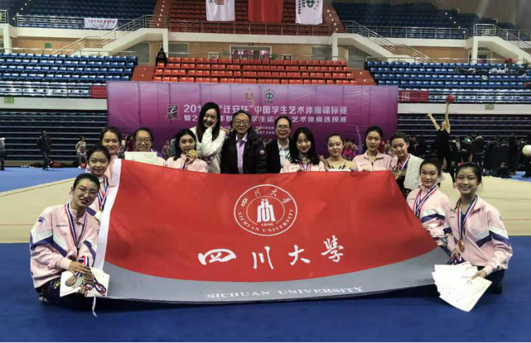 太阳成集团tyc122cc派出11名在校学生参加大学A组的4项集体,7个单项的比赛。队员来自口腔医学院、华西临床学院、机械工程学院、匹兹堡学院、文新学院、经济学院、商学院和计算机学院。全部队员入校时,艺术体操都是0基础,她们平时在谭月华、陈雯两位老师的训练下,刻苦训练,赛场上发扬拼搏精神,克服紧张心理,展现川大学子良好的精神风貌,赛出了风格!取得了集体赛(五级棒第一名;五级徒手第三名;三球两绳第三名;五人彩带第三名并获得集体全能第二名)及个人赛(个人球第二和第六;个人绳第四;个人圈第四和第六;个人彩带第八;个人全能第五)的好成绩!