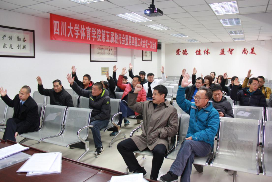国歌声中迎来了体育学院2019“双代会”