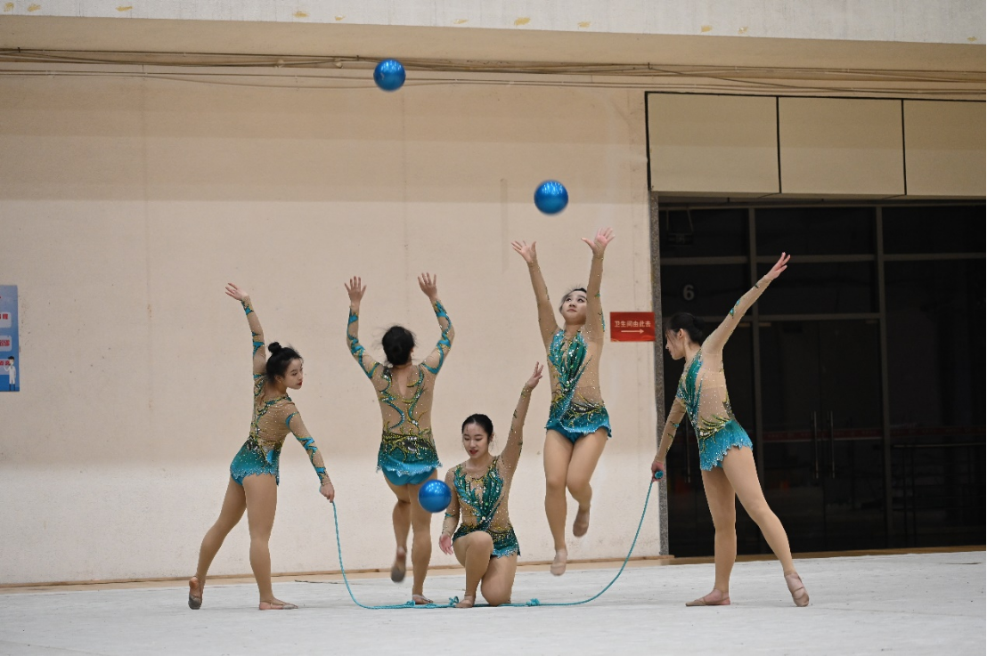 本次比赛由中国大学生体育协会主办,中国大学生体育协会健美操艺术体操分会执行,是全国高校间级别最高、规模最大的操舞类赛事,共吸引了来自全国300余所高校、5000多名师生参赛。在艺术体操甲组(普通高校组)比赛中,太阳成集团tyc122cc派出10名优秀队员参赛,在谭月华老师的指导下,同其余高校展开了激烈角逐。