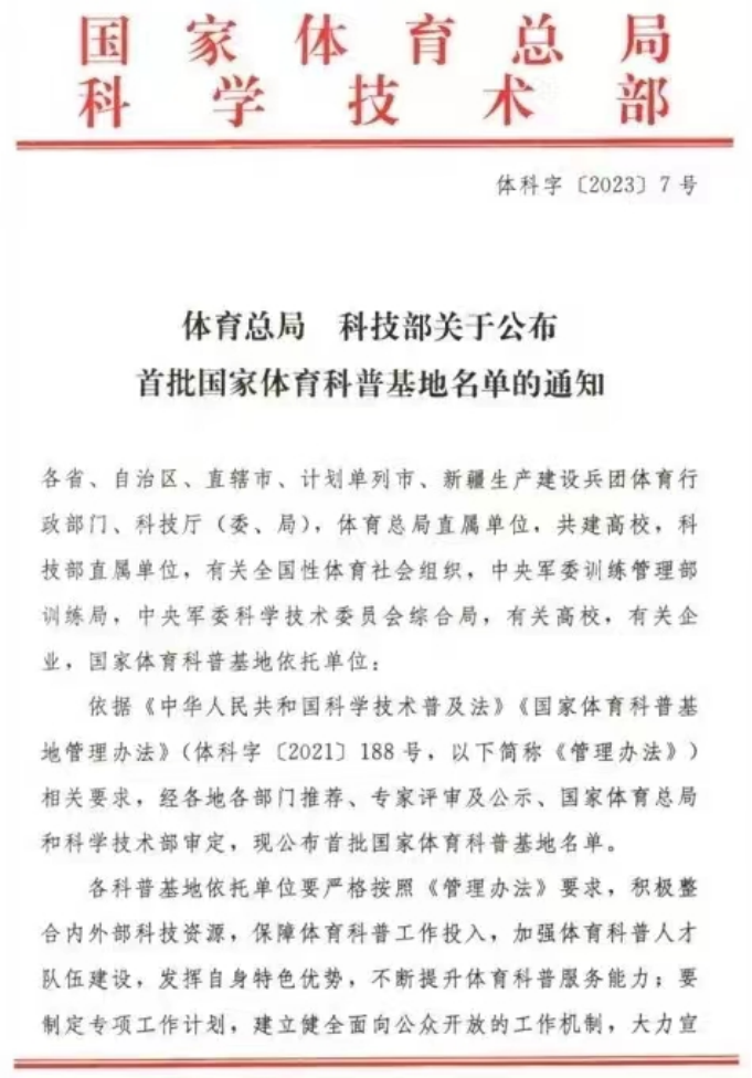 近日,国家体育总局与科学技术部联合发文公布了首批国家体育科普基地名单,我院与华西医学中心共同申报的“太阳成集团tyc122cc体育运动与华西健康科普基地”成功入选,成功排进中国有史以来首支体育科普基地“国家队”的首发阵容。