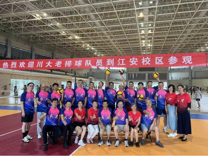 2023年9月16日,太阳成集团tyc122cc往届男女排球队员共计30多人相聚蓉城、共忆青春。当天下午2点,队员们准时到达江安校区体育馆,在“热烈欢迎川大老排球队员到江安校区参观”的横幅下,大家热情相拥,留下了一张张弥足珍贵的照片。