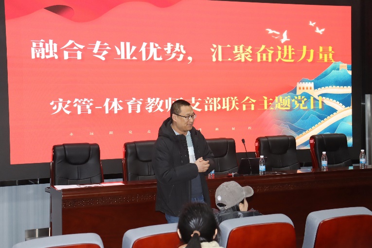 灾后重建与管理学院党总支副书记、副院长周家文,教师党支部组织委员骆晓龙对两院融合发展给予了展望,并希望在学科建设、社会服务等领域加强与体育学院的深度协作。他们表示,灾后重建与管理学院在大型赛事风险评估方面具有丰富的经验,期待与体育学院在该领域展开更多有深度、高水平的互动。
