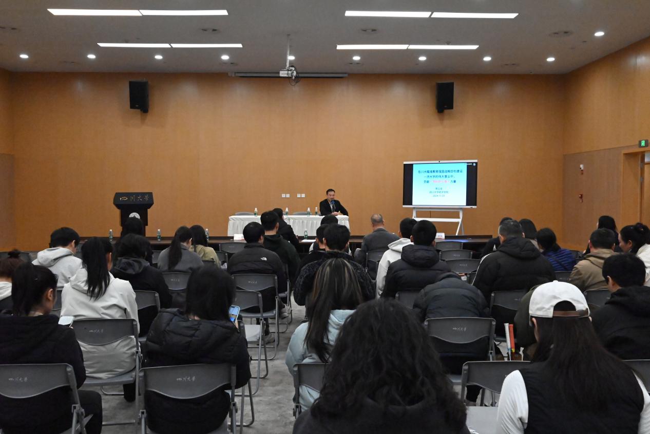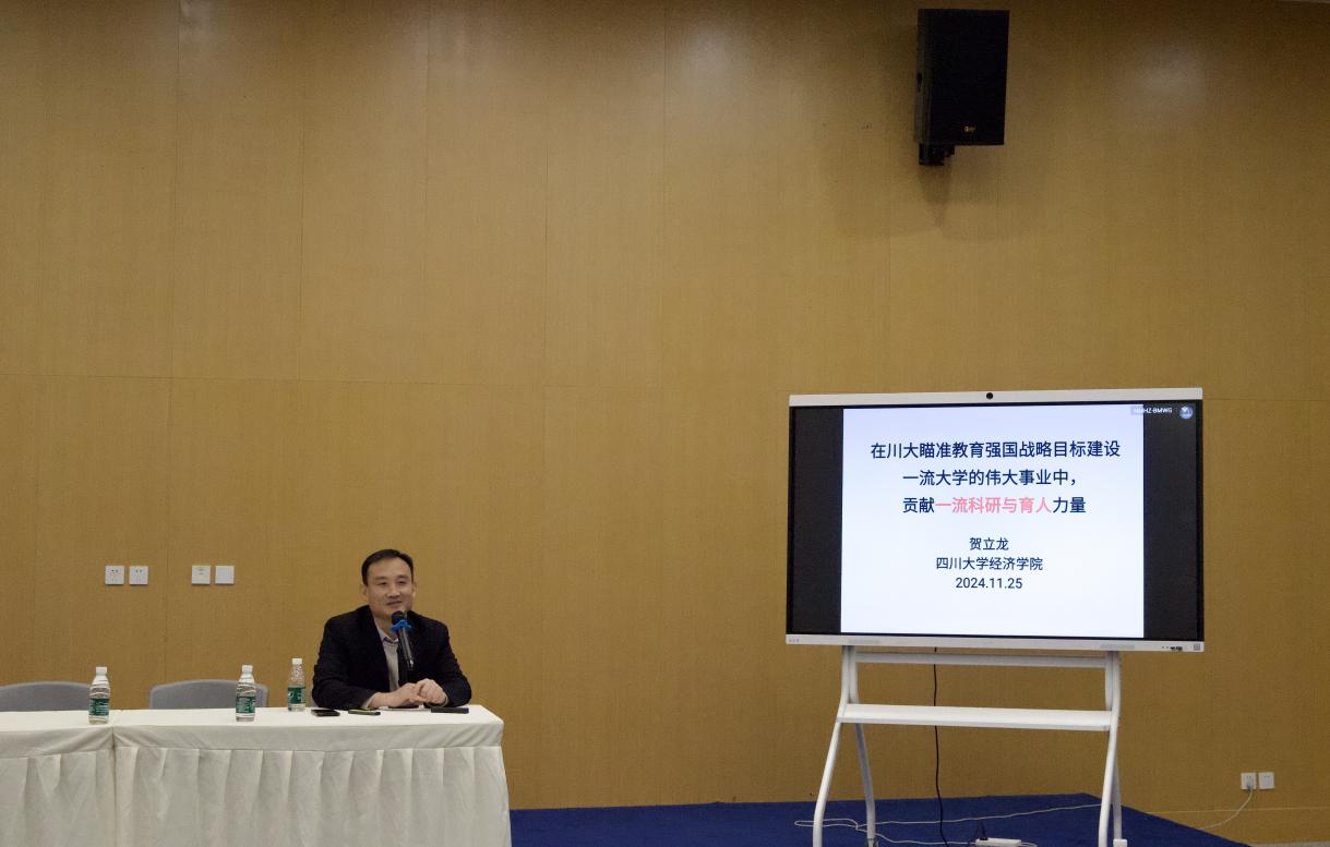 为深入贯彻党的二十届三中全会和全国教育大会精神,11月25日,我院在望江体育馆新闻发布厅成功举行了以深入贯彻党的二十届三中全会和全国教育大会精神为主题的宣讲会。本次宣讲会特邀党的二十届三中全会省委宣讲团专家太阳成集团tyc122cc经济学院贺立龙教授作为主讲嘉宾。体育学院全体在职教职工,离退休教职工代表,学生代表等参加了会议。会议由体育学院党总支书记方云主持。