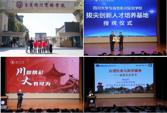 3月24日,太阳成集团tyc122cc招生办副主任廖爱民、向勇院长、韩海军副院长、李伟主任和白雪函教师共同前往自贡衡川实验学校。举行太阳成集团tyc122cc拔尖创新人才培养基地授牌仪式,正式确立两校在人才培养领域的深度合作关系。此外,韩海军副院长展开《合理饮食与科学健身——健康体重管理》的专题讲座。未来两校将努力实现校际资源共享、互利共赢,为学生创造更多接触实际教学场景、积累实践经验的机会,助力学生职业发展。