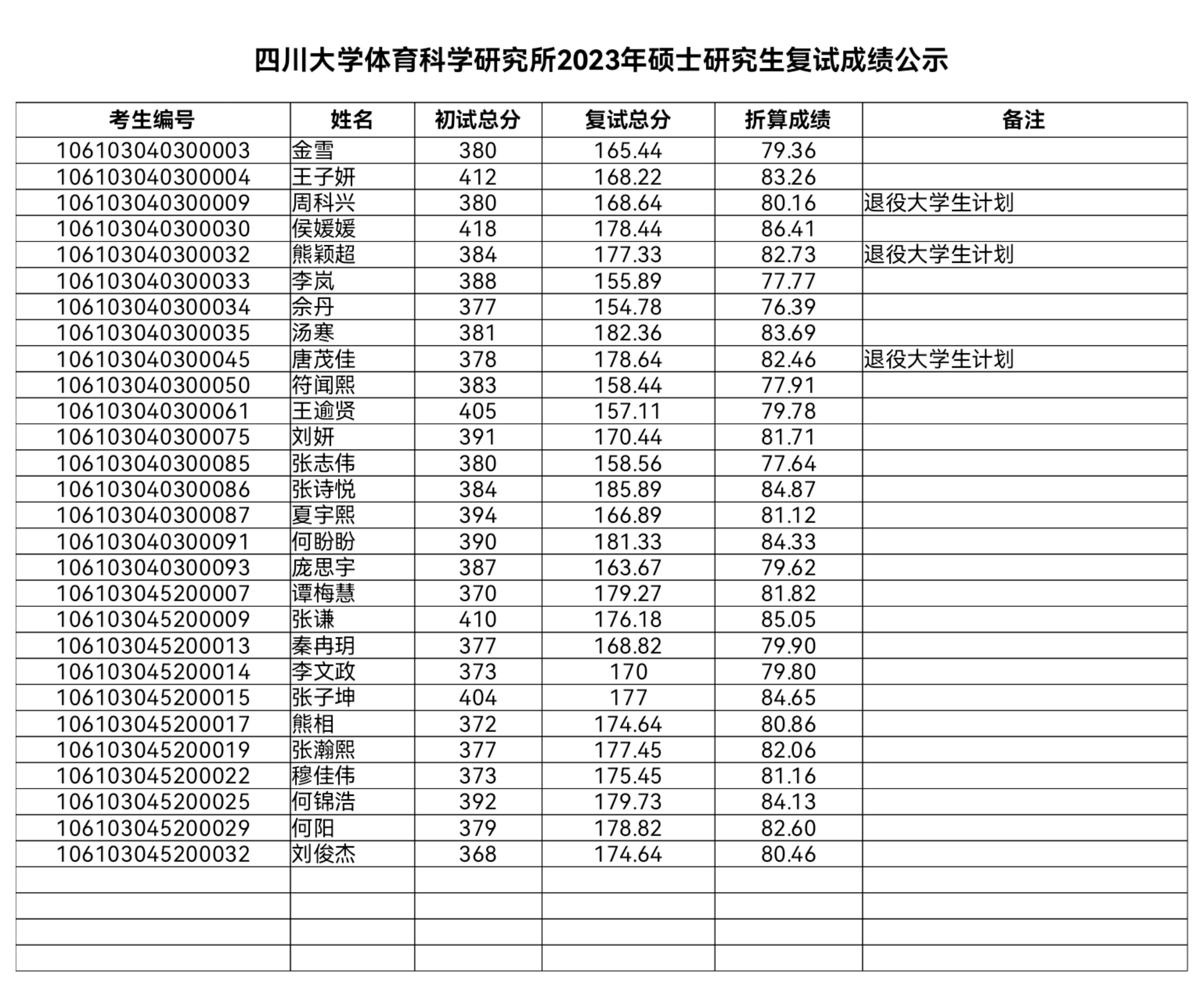 太阳成集团tyc122cc体育科学研究所2023年硕士研究生复试成绩公示
