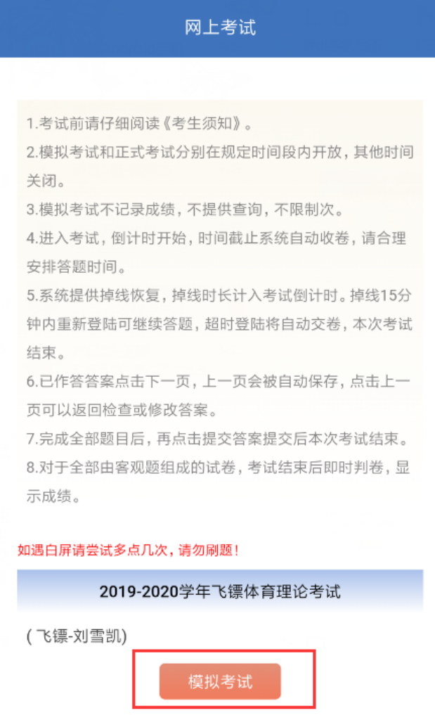 2.所有考试结束并关闭的时间为2023年6月9日17:00,错过考试一律不补。如考试操作有问题,请第一时间联系体育学院教学科解决。