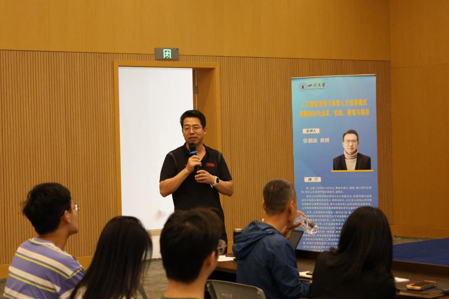 5月24日,我院在望江体育馆新闻发布厅开展了“蜀·述”体育文化工作坊之名师大讲堂系列活动。本次活动邀请到了全国体育口述历史研究会副会长、山东教育发展促进会常务理事兼智慧体育专业委员会会长、山东体育学院党委委员、副校长、博士研究生导师张佃波教授。