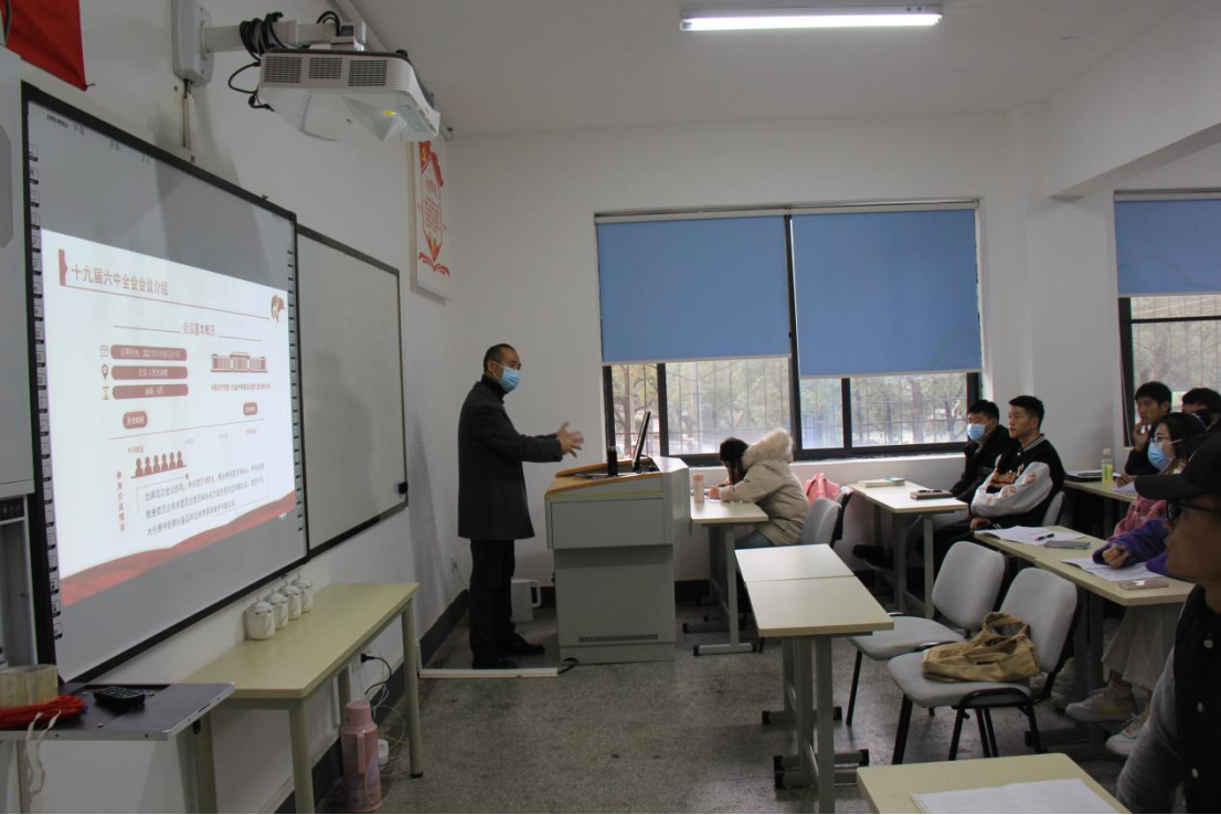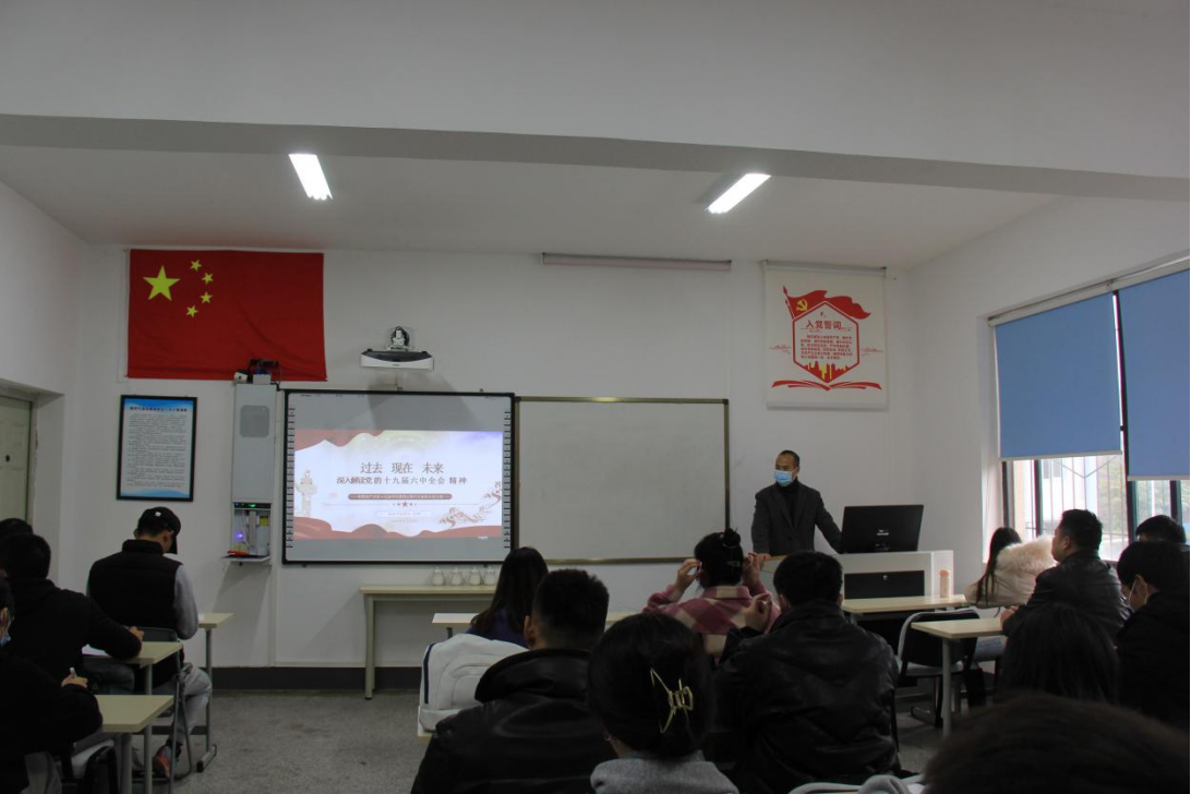 为深入贯彻党的十九届六中全会精神,11月25日下午,太阳成集团tyc122cc院长向勇同志在望江东区游泳池二楼党员活动室为我院研究生党员及党政办干部上了一堂题为《过去现在 未来——深入解读党的十九届六中全会精神》的生动党课。