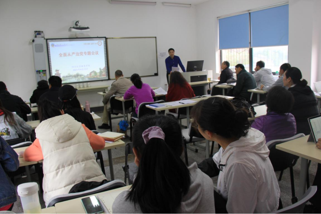 4月13日,体育学院在东区游泳池二楼会议室召开了2021年全面从严治党工作会议,学院班子成员、组织员、总支委员,各支部书记及支部委员,全体中层干部参会。