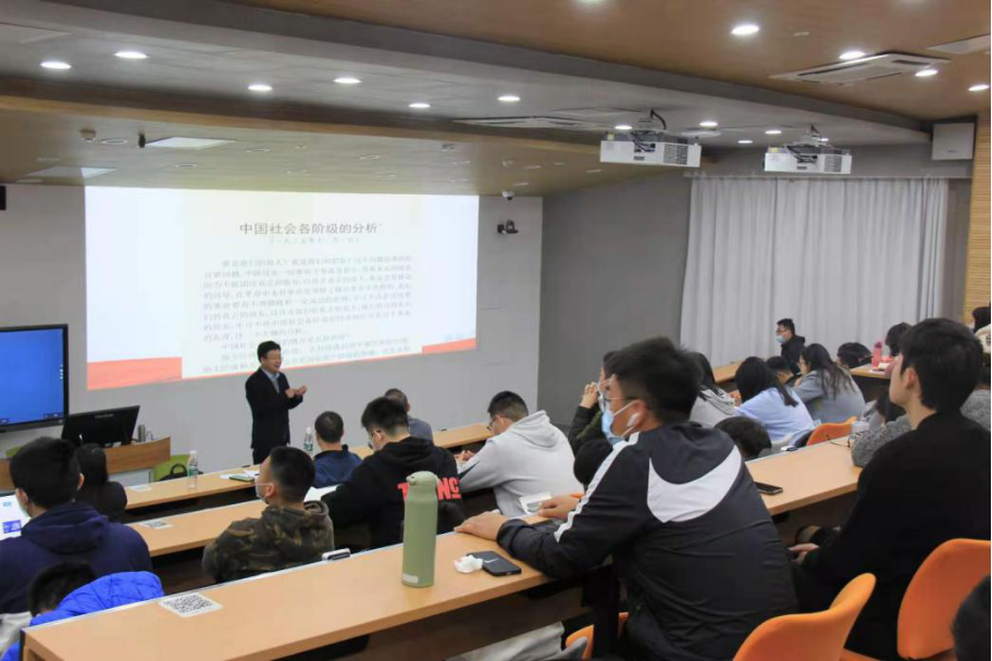 此次宣讲题目是"马克思主义为什么行?",纪志耿教授学识渊博,语言风趣幽默,从毛泽东坚定马克思主义信仰信念的起点、对理论创造性运用和理论中国化等几个层面,穿插陈望道翻译《共产党宣言》、恽代英翻译《阶级争斗》等生动历史故事,并结合工作实际,阐述了深入基层劳动人民对教学科研工作的重要性。