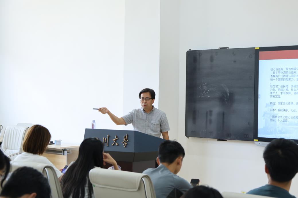 方云书记进一步讲到,价值观是一个人的精神支柱,是人们对事物价值大小进行评价的根本认识和态度,是人们心中深沉的信念,是生活中判断是非的标准,是每个人行动的准则,不能错误,也不能缺失。他还强调,知识和品德是树立社会主义核心价值观的重要基础,作为川大人应勤学、修德、明辨、笃实,时刻保持昂扬向上的精神状态,弘扬以爱国主义为核心的民族精神和以改革创新为核心的时代精神,将社会主义核心价值观内化为精神追求,外化为自觉行动。