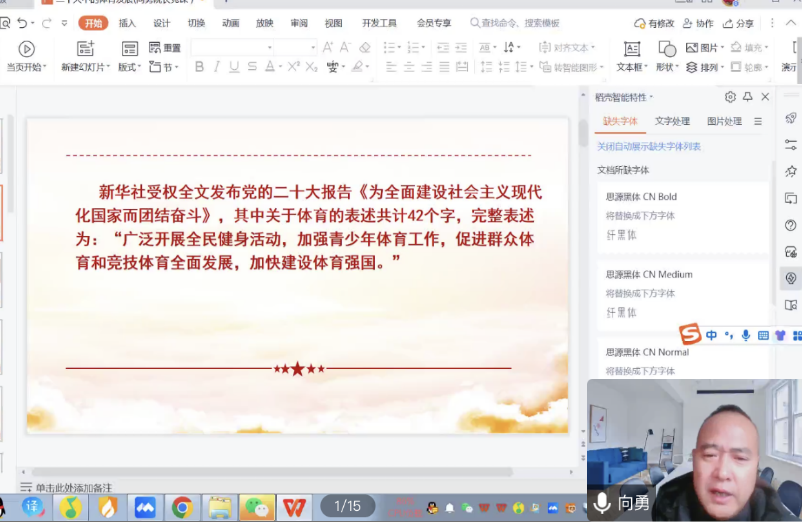 12月10日上午10点,为贯彻学习党的二十大精神,阐明体育在社会主义事业高质量发展中的时代价值,体育学院组织并召开了专题党课教育大会,会议由向勇院长主持,全体师生共同参加此次会议。
