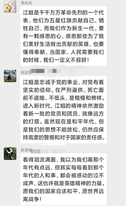 在活动结束后,全体同学纷纷发表感悟,表示要致敬英烈、捍卫英烈,学习江姐精神,发扬革命传统,不断回溯历史、回望英烈事迹的光与影、情与景,更要不忘初心使命,扎扎实实加强专业学习,为实现中华民族伟大复兴的体育强国路而开拓发展,为实现中华民族伟大复兴的中国梦而努力奋斗。