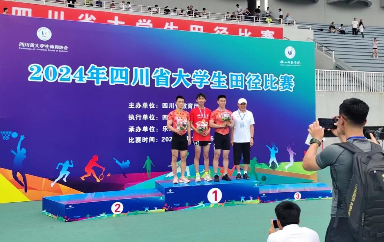 6月11日-15日,2024 年四川省大学生田径比赛在乐山师范学院举行,我校田径代表队在以袁志华老师为领队,赵建春、朱亮宇为教练的带领下,共派出21名运动员,在各个项目,经过五天的激烈角逐,斩获佳绩,取得多项优异成绩。我校田径队吴坦平同学获得男子校园组跳高冠军,为我校本次比赛拿下了第一块金牌;黎蕊霖同学获得女子高水平组1500 米、3000米冠军 ,并以4分39秒52 的成绩一举打破1500 米项目四川省大学生纪录;徐晨昊同学蝉联男子高水平组跳高冠军;白昊石同学荣获男子校园组110米栏冠军。经过顽强拼搏,多名同学创造了自己的PB,生动诠释了更高更快更强的体育运动精神。