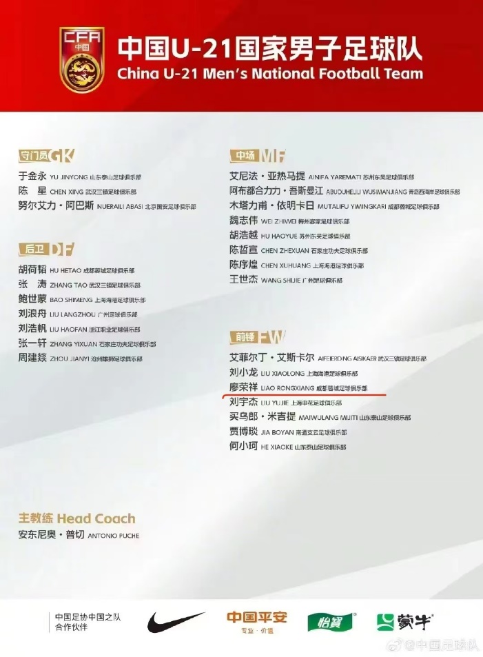 2024年8月19日,中国足球协会公布U-21国家男子足球队集训名单,我校高水平运动员廖荣祥入选,备战2025年U-23亚洲杯预选赛及2026年名古屋亚运会。